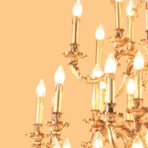 Đèn chùm cổ điển 72 tay LV1011/72 sử dụng bóng LED tiêu chuẩn E14. Bóng đèn sử dụng ánh sáng vàng ấm với công suất 3 – 5W trên bóng. Đèn chùm cổ điển 72 tay LV1011/72 kèm bóng chất lượng cao, đáp ứng chỉ số hoàn màu trên 80 và tiết kiệm điện.