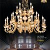Đèn Chùm Đồng Nến Cổ Điển Chao Đá Vàng 15 Tay D950mm DR-NC7004/10+5