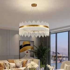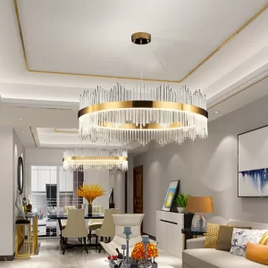 - Tạo không gian sang trọng: Đèn chùm pha lê thường được sử dụng trong các không gian cao cấp như nhà hàng, khách sạn, phòng khách sang trọng hoặc trong các sự kiện quan trọng. Chúng tạo ra không gian ấm áp, lịch sự và sang trọng.