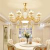 Đèn Chùm Đồng Nến Cổ Điển Chao Đá Vàng 15 Tay D950mm DR-NC7004/10+5