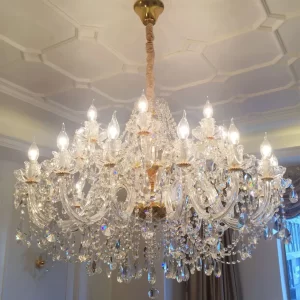 - Thẩm mỹ cao: Đèn chùm pha lê nến mang đến vẻ đẹp tinh tế và sang trọng. Pha lê được sử dụng để tạo ra các mảnh vỡ sáng lấp lánh, tạo hiệu ứng ánh sáng đẹp mắt khi ánh sáng phản chiếu qua chúng. Điều này tạo ra không gian trang trọng và lôi cuốn.