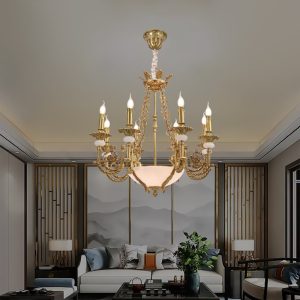 Đèn Chùm Đồng Cổ Điển Chao Đá Phòng Khách 18 Tay D1050mm HP-CD1258/18