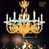Đèn Chùm Đồng Nến Cổ Điển Chao Đá Vàng 15 Tay D950mm DR-NC7004/10+5