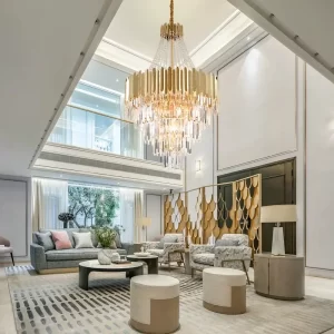 - Tạo không gian sang trọng: Đèn chùm pha lê thường được sử dụng trong các không gian cao cấp như nhà hàng, khách sạn, phòng khách sang trọng hoặc trong các sự kiện quan trọng. Chúng tạo ra không gian ấm áp, lịch sự và sang trọng.