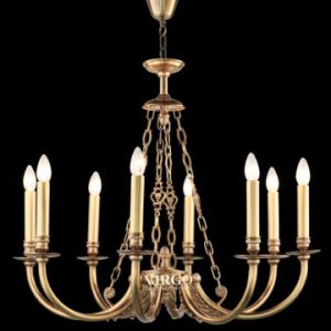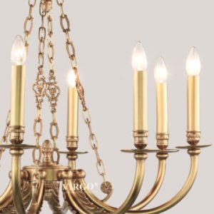 Đèn chùm đồng L388 sở hữu khung đèn đồng nguyên chất với màu sắc tự nhiên, không phủ bất kỳ màu sơn nào. Các chi tiết trên Đồng cũng sắc nét, khác biệt hoàn toàn so với các vật liệu khác. Đèn chùm đồng L388 cho khả năng sử dụng vượt trội theo thời gian.