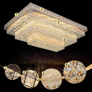 - Tạo không gian sang trọng: Đèn chùm pha lê thường được sử dụng trong các không gian cao cấp như nhà hàng, khách sạn, phòng khách sang trọng hoặc trong các sự kiện quan trọng. Chúng tạo ra không gian ấm áp, lịch sự và sang trọng.